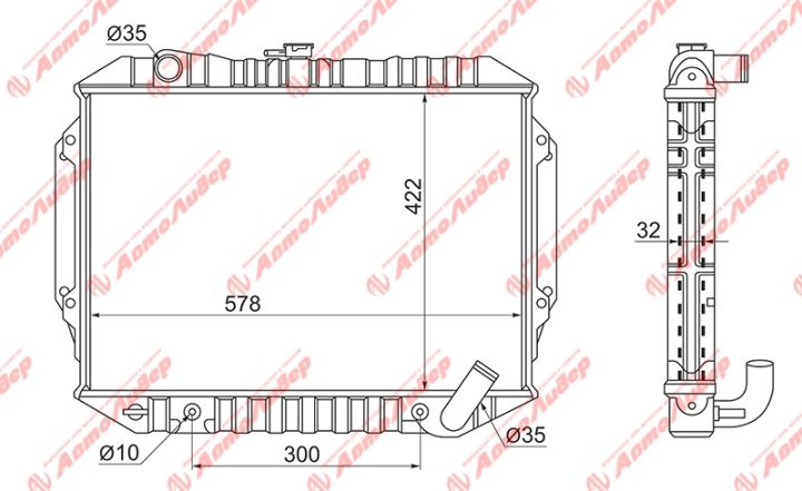 Радиатор охлаждения /AUTOLEADER для Mitsubishi Pajero 1991-1999 4D56T 4G64 2.4 2.5 /без крышки; MC-V41W-ATM-1232 MC00062.4ATM MB660080 MB660081